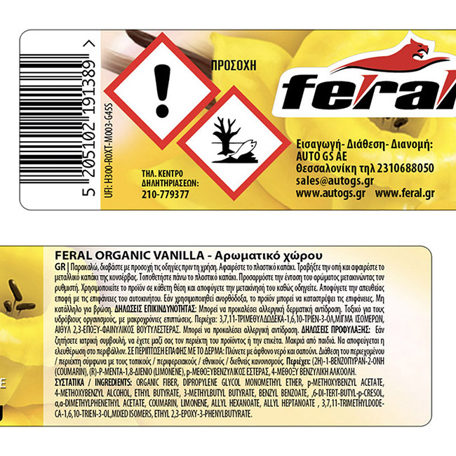 Το οργανικό αποσμητικό χώρου Feral έχει ως βάση οργανικές ίνες, εμποτισμένες με άρωμα, που δίνει στο περιβάλλον σας αναζωογονητικές μυρωδιές της φύσης. Το αρωματικό Vanilla σε συσκευασία κονσέρβας, απευθύνεται σε εκείνους που θέλουν μοναδικά αρώματα και ταυτόχρονα διακριτική τοποθέτηση του αρωματικού. Μπορείτε να τα τοποθετήσετε οπουδήποτε και θα εκπλαγείτε με τη διάρκεια του αρώματος, η οποία είναι μέχρι και 60 ημέρες.