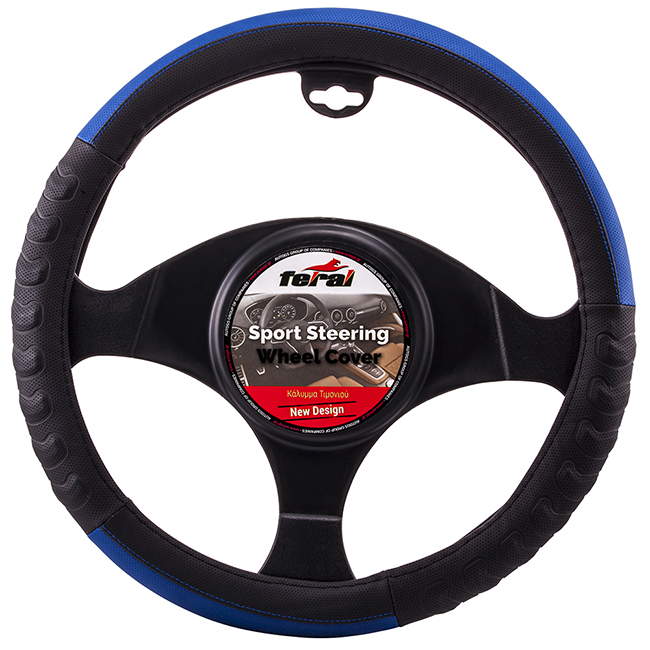 Κάλυμμα Τιμονιού Αυτοκινήτου Δερματίνη Ανάγλυφο Μαύρο-Μπλε Medium 38cm 1 Τεμάχιο