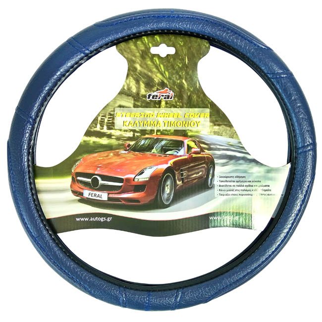 Κάλυμμα Τιμονιού Αυτοκινήτου Δερματίνη Με Γαζιά Μπλε Large 40cm 1 Τεμάχιο
