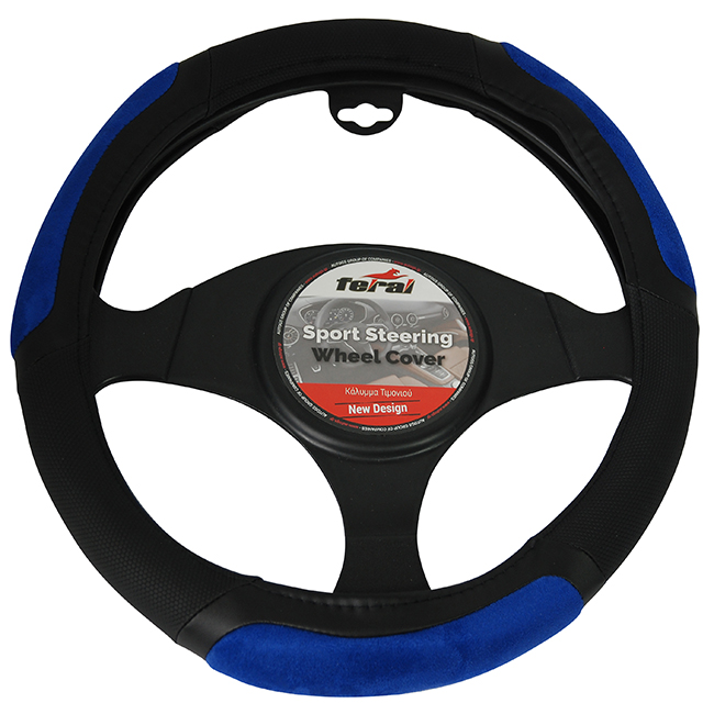 Κάλυμμα Τιμονιού Αυτοκινήτου Δερματίνη Δίχρωμο Μαύρο-Μπλε Medium 38cm 1 Τεμάχιο