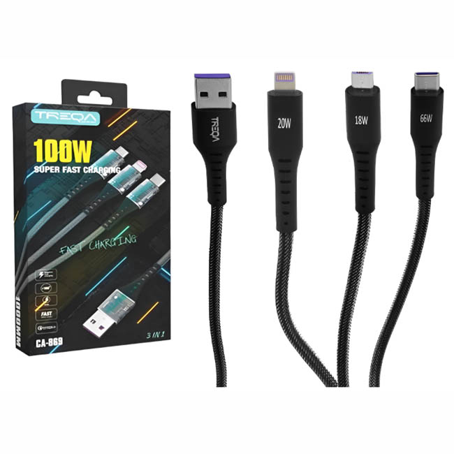 Καλώδιο Φόρτισης Και Μεταφοράς Δεδομένων USB 3πλό Για Smartphone, Type-C Και Iphone 5A 1Τμχ