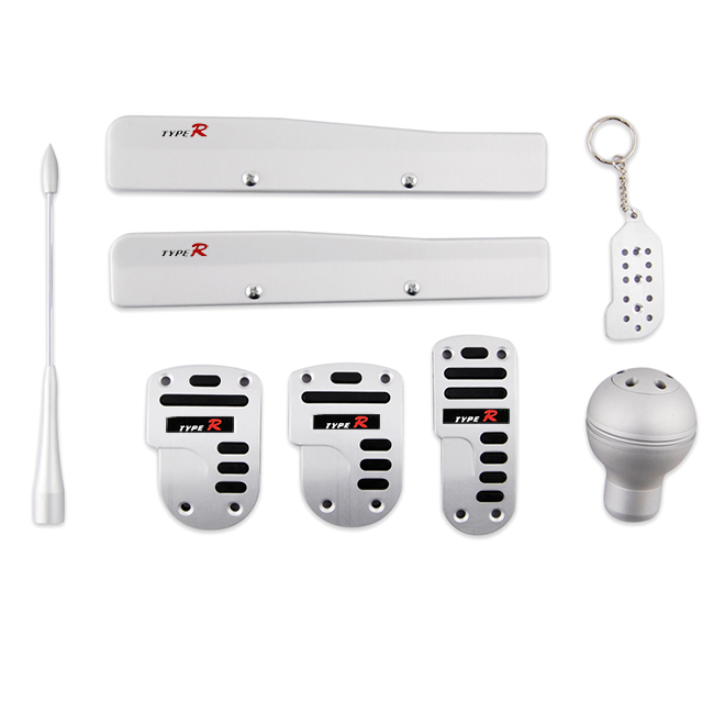 Πεντάλ Αλουμινίου Universal Με Πόμολο, Λεβιέ, Μπρελόκ & Κεραία Type-R Ασημί Σετ 8 Τεμάχια