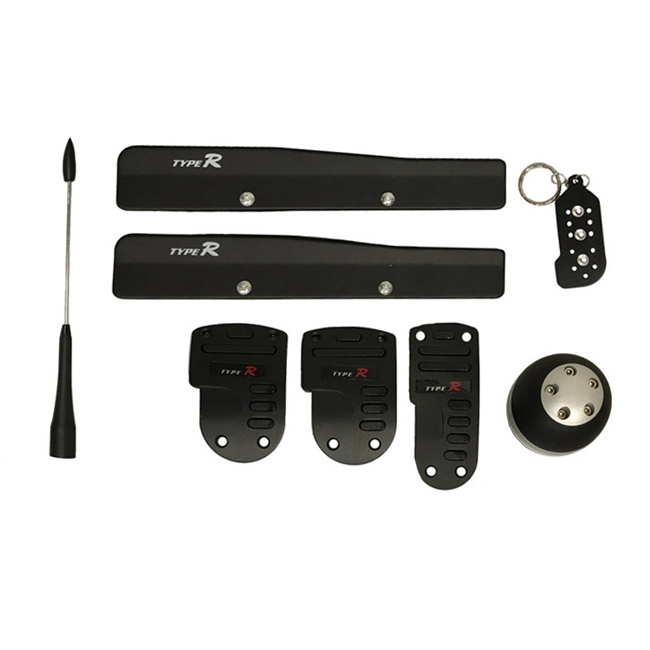 Πεντάλ Αλουμινίου Universal Με Πόμολο, Λεβιέ, Μπρελόκ & Κεραία Type-R Μαύρο Σετ 8 Τεμάχια
